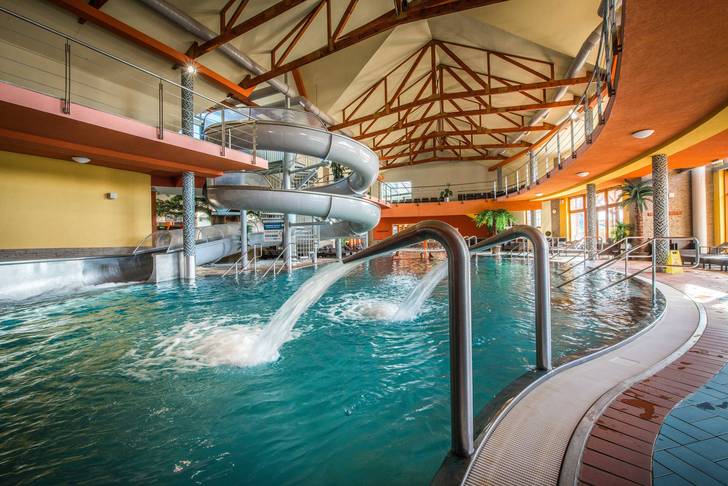 Program: Celodenní koupání v kompletně zrekonstruovaném termálním komplexu Bešeňová - 12 vnitřních a venkovních bazénů s termální vodou 32-40°C, vnitřní tobogán a vířivky, krytá toboganová věž s tobogány o délce 1 km, bazén s vodními vlnami, bazén s vodním barem, dětský ráj s vodním hradem, vitální svět, plochy s lehátky, moderní šatny a občerstvení. Moderní areál na Slovensku, který se stále rozrůstá. Doporučujeme pro rodiny s dětmi !!!