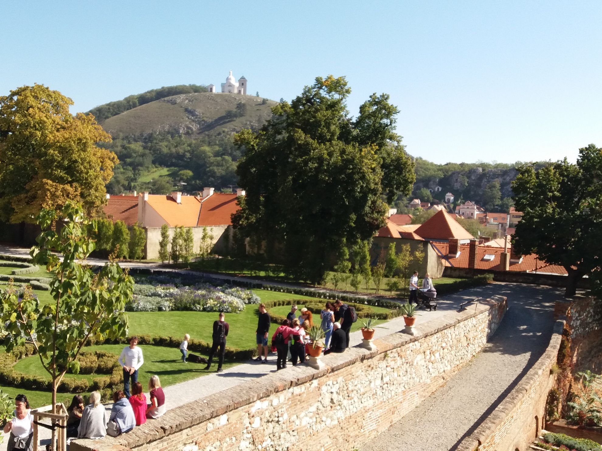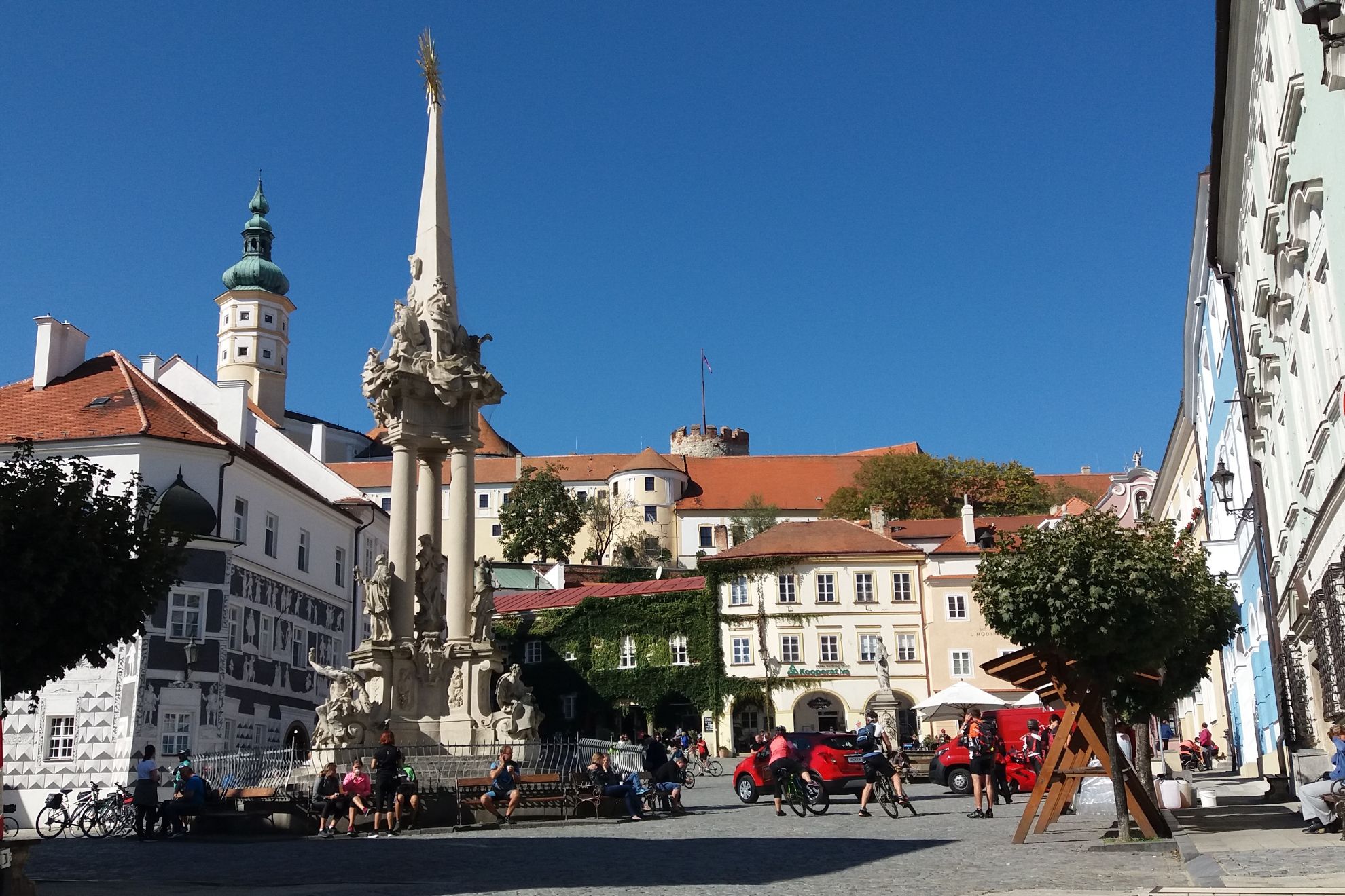 Přejezd busem do Laa a.d. Thaya, vyložení kol, prohlídka města. Jantarovou stezkou do Hrušovan nad Jevišovkou, Nového Přerova a mezi vinicemi (možnost ochutnávky vína) do Mikulova. Zájemci prohlídka města (zámek a zahrady, Svatý kopeček s výhledy do okolí, centrum, jeskyně Na Turoldu). Přes letohrádek Portz (vinné sklepy, cihlový most), do Valtic (zámek, podzemí). Trasa cca 45 km, většinou cyklostezka.