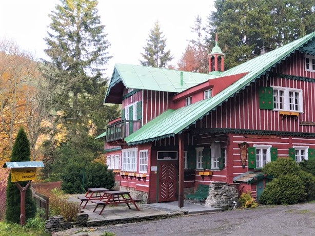 2.den: po snídani přejezd busem do Harrachova, vyložení kol. Prohlídka Harrachova (sklárna, Sklářské muzeum s minipivovarem, areál skokanských můstků, možnost zajet si k 10 m vysokému Mumlavskému vodopádu. Lanovkou na Horní Domky nebo na kole na Dvoračky (oblíbená horská bouda). Přes Rezek (samoty, dnes tu stojí horský hotel), Jestřabí do podhorské obce Poniklé. Zájemci návštěva ruční výroby vánočních ozdob z foukaných skleněných perel, zapsáno v UNESCO. Velmi zajímavá exkurze – dopo-ručujeme. Trasa celkem 25 km, možnosti prodloužení. Naložení kol, odjezd, večeře, nocleh.