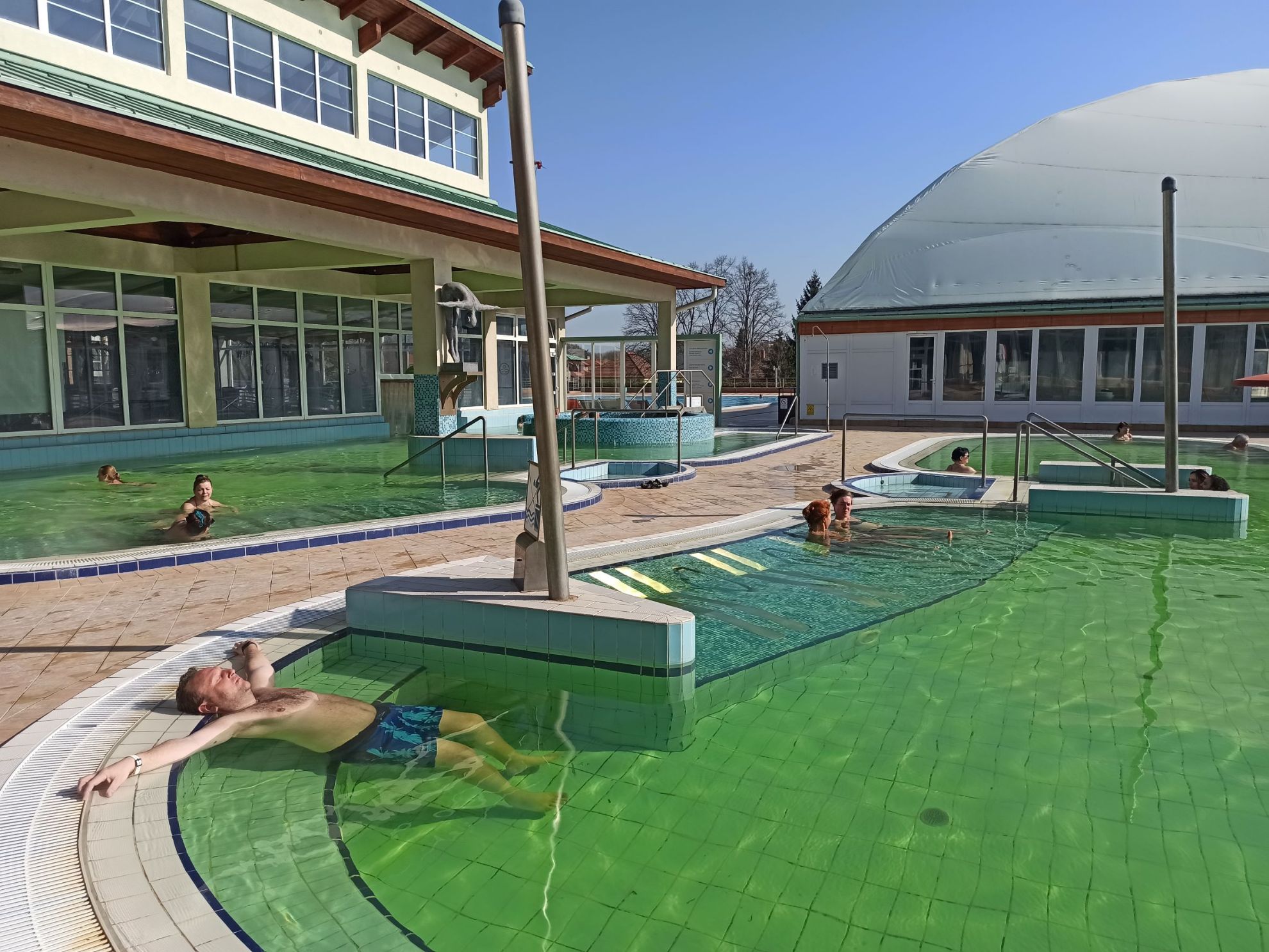 Program: Koupání v termálech nedaleko od Bratislavy. Termální prameny mají léčivou vodu světově uznávanou, která je zařazena mezi nejlepší léčebné vody na pohybové ústrojí v Evropě a 4 nejlepší v Maďarsku. Předností je oddělení klidových odpočinkových bazénů od bazénů zážitkových s tryskami a proudy. Teplota vody od 33-38°C, 5 bazénů. Krytý plavecký bazén s termální vodou, který má na rozdíl od jiných termálů celoroční provoz. Lehátka u bazénu zdarma a obsluha v restauraci slovensky mluvící. Nejsou tobogány a zážitkové bazény pro děti. Odjezd v 16:30 hod.