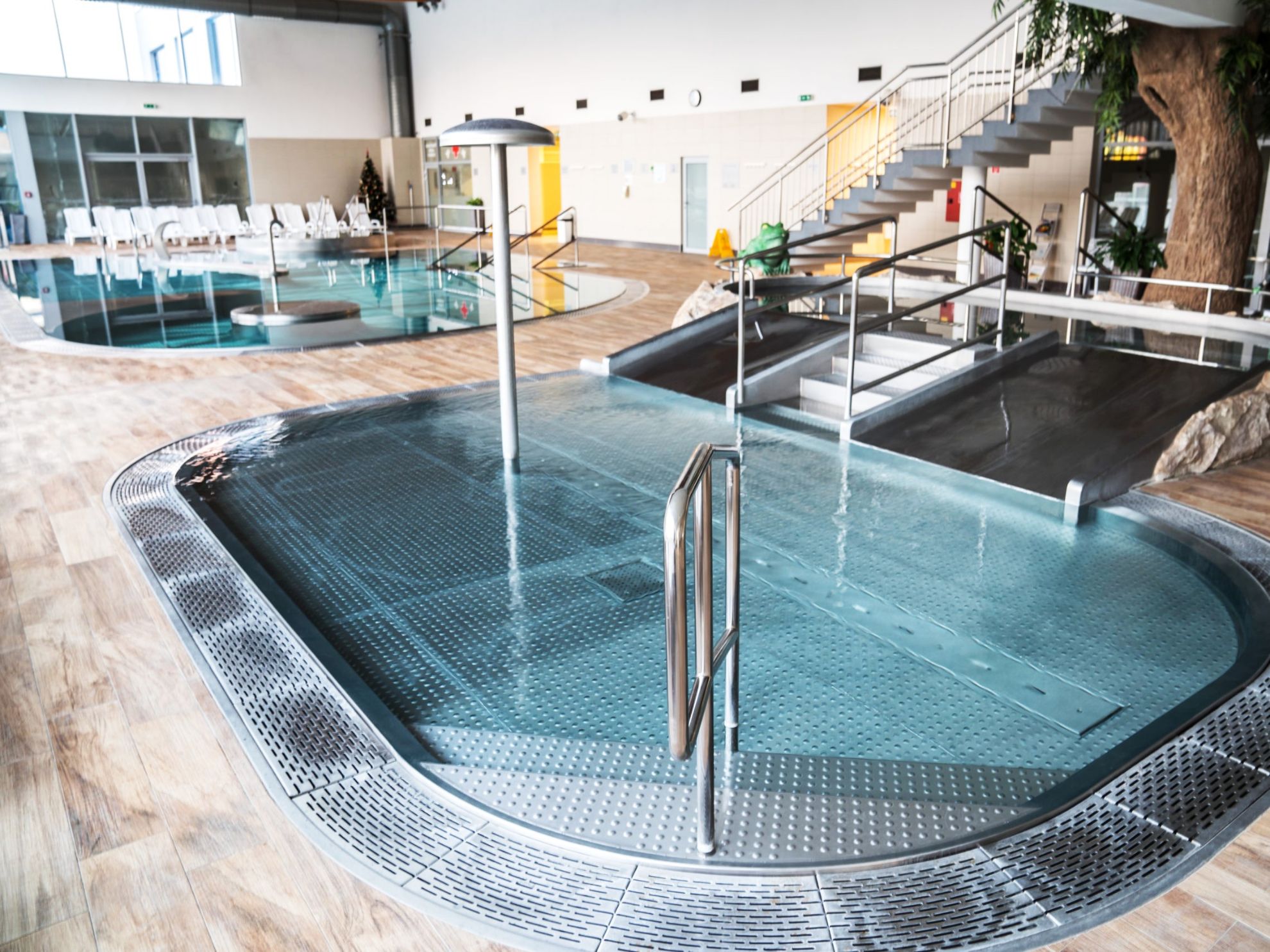 Areál je rozdělen na tři části. V kryté části jsou 3 bazény a vířivka, venku 3 bazény, z toho jeden se slanou vodou. Všechny tyto bazény mají celoroční provoz o teplotě vody 28-40°C. V třetí části je letní aquapark - velký zážitkový bazén, vodní hrad ve stylu pirátské lodě s tobogány, líná řeka, která vás unáší na nafukovacím kruhu, relaxační bazén, krytá tobogánová hala. Teplota vody je 30-34°C. V areálu jsou restaurace, bufety, koliba a dostatek lehátek. Je zde také jezero, v létě možnost půjčení lodiček (za poplatek). Doporučujeme pro rodiny s dětmi !!!